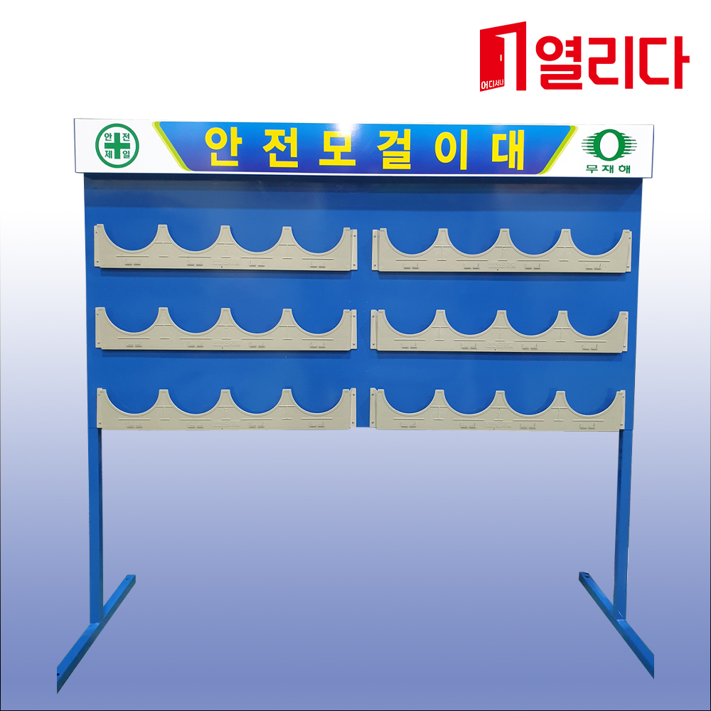 산업현장에서 사용하는 안전모를 정리해서 걸어두는 전용 거치대