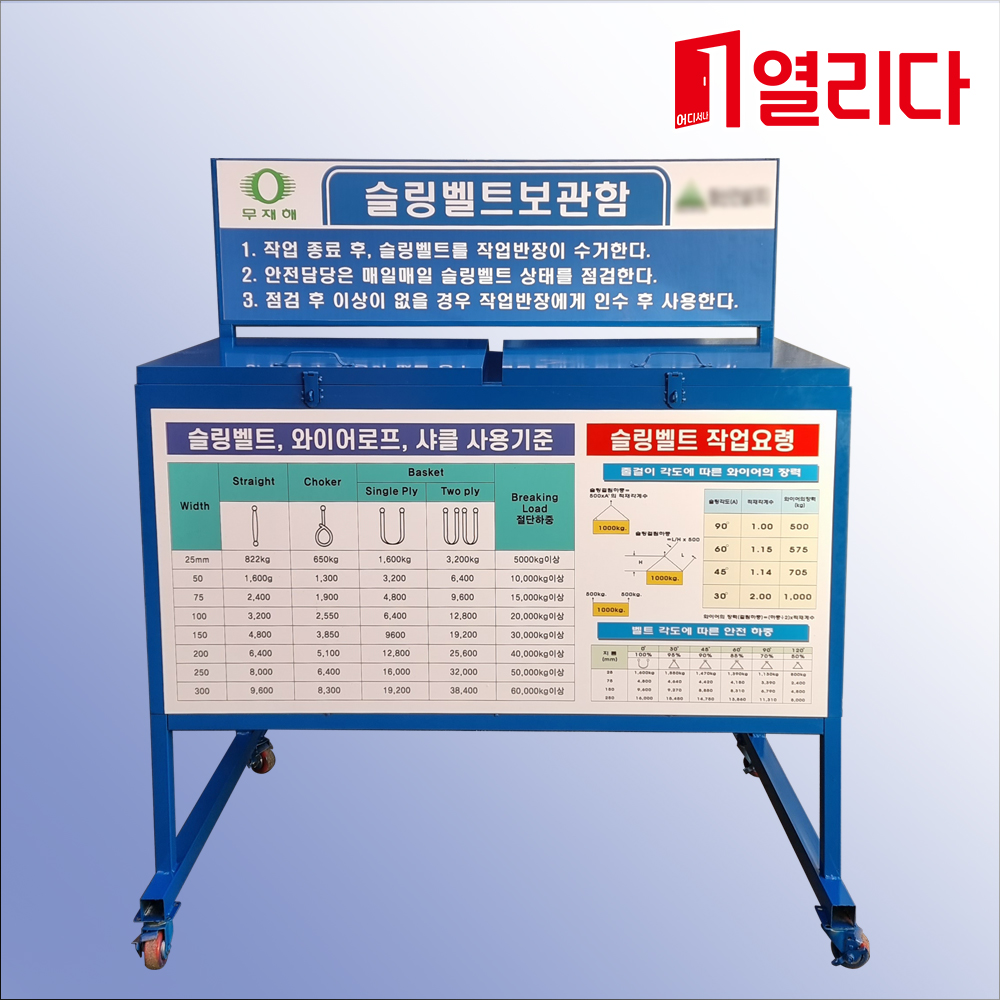 제품명 2구 슬링벨트 보관함 갈바도장 캐스터부착