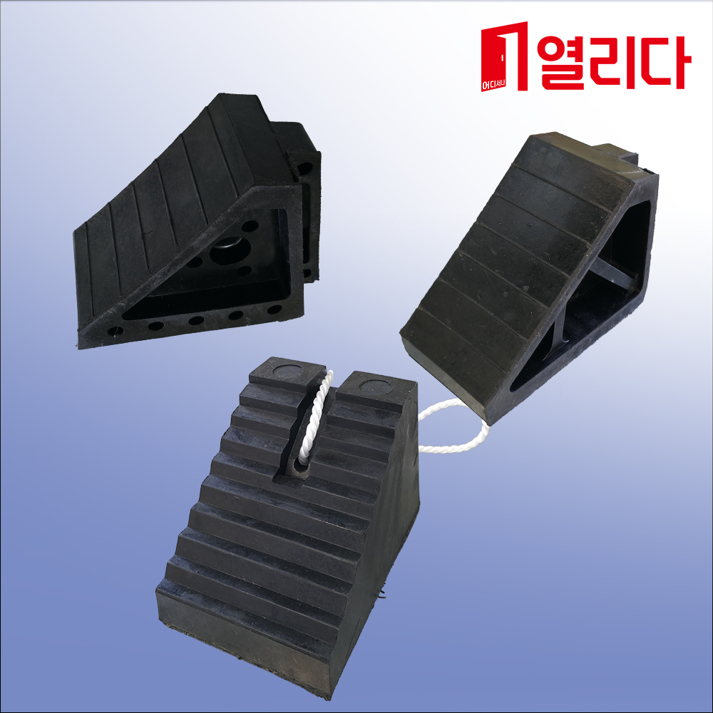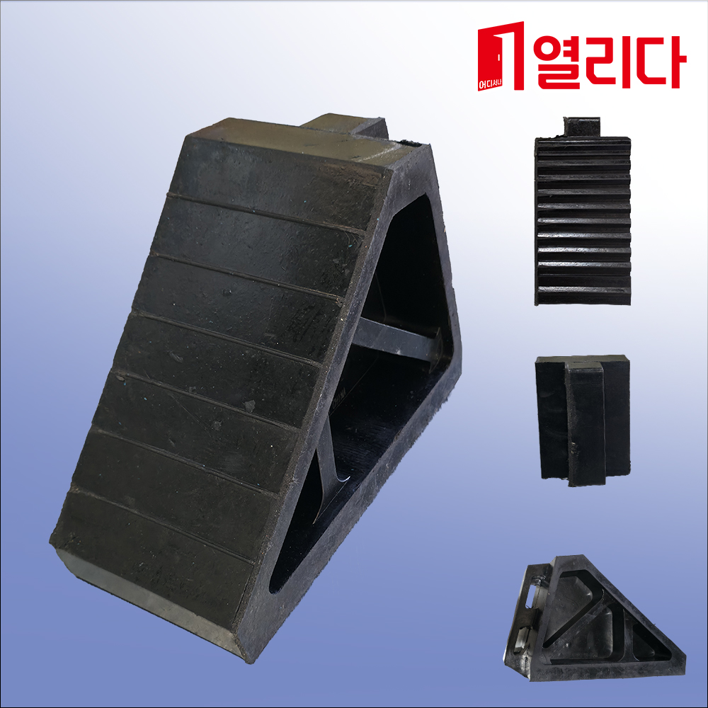 차량 주차 시 바퀴를 안정적으로 고정하여 차량의 미끄럼 및 이동을 방지하는 안전용 고임목입니다. 주차장, 공사현장, 물류센터, 화물차 정차 구역 등 다양한 장소에서 사용됩니다.