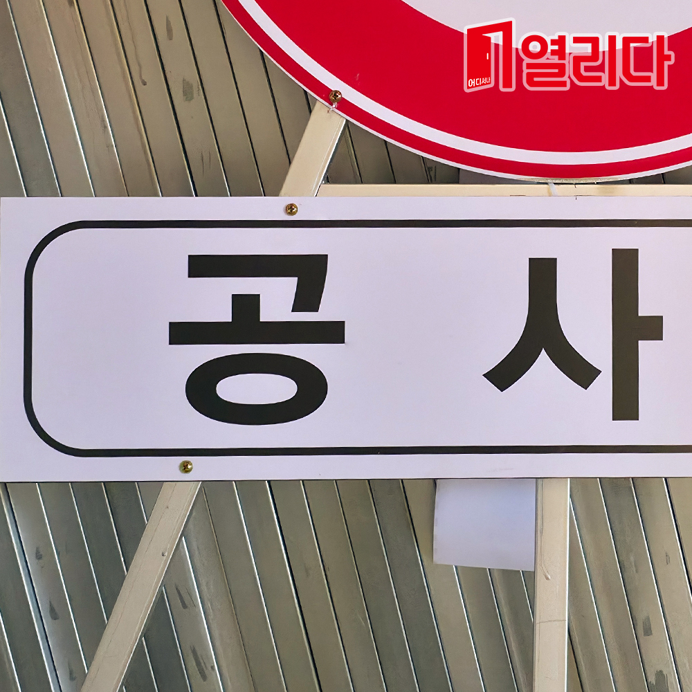 삼각틀(소) + 원형(30) 도로간판 + 보조철판(공사중)