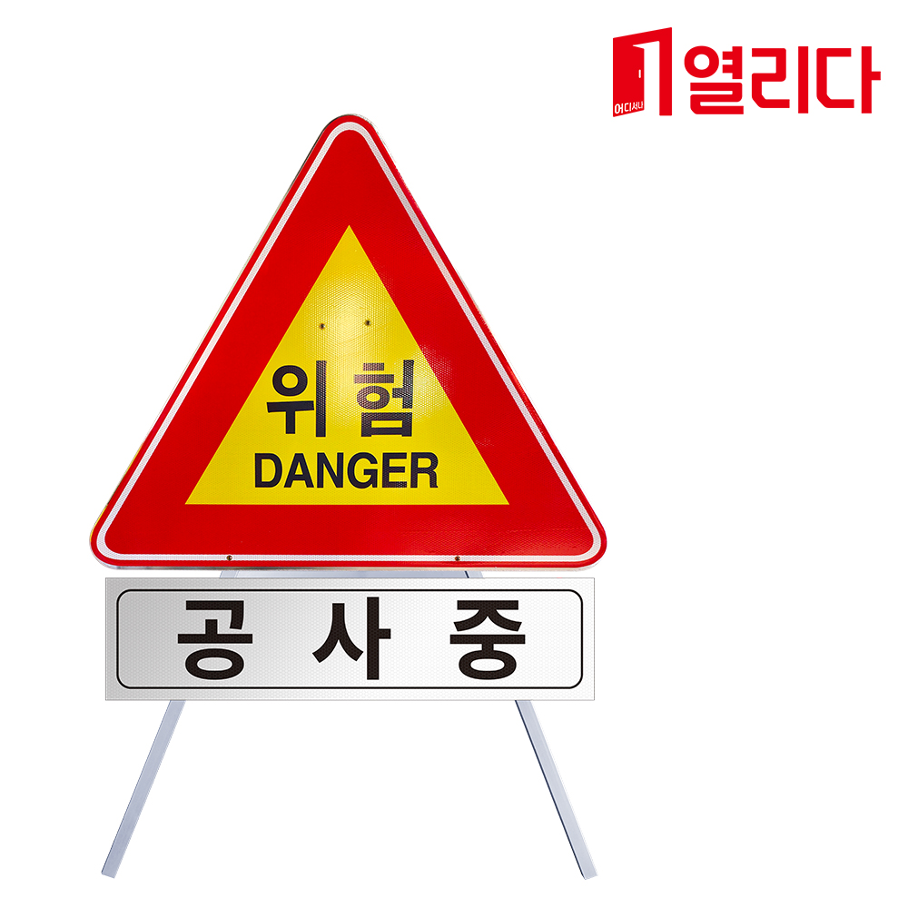 제품명 삼각틀(소) + 삼각(위험) 도로간판 + 보조철판(공사중) 고휘도