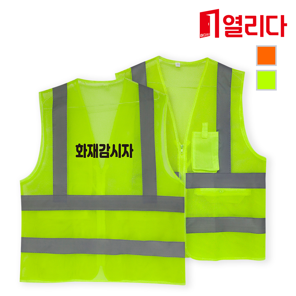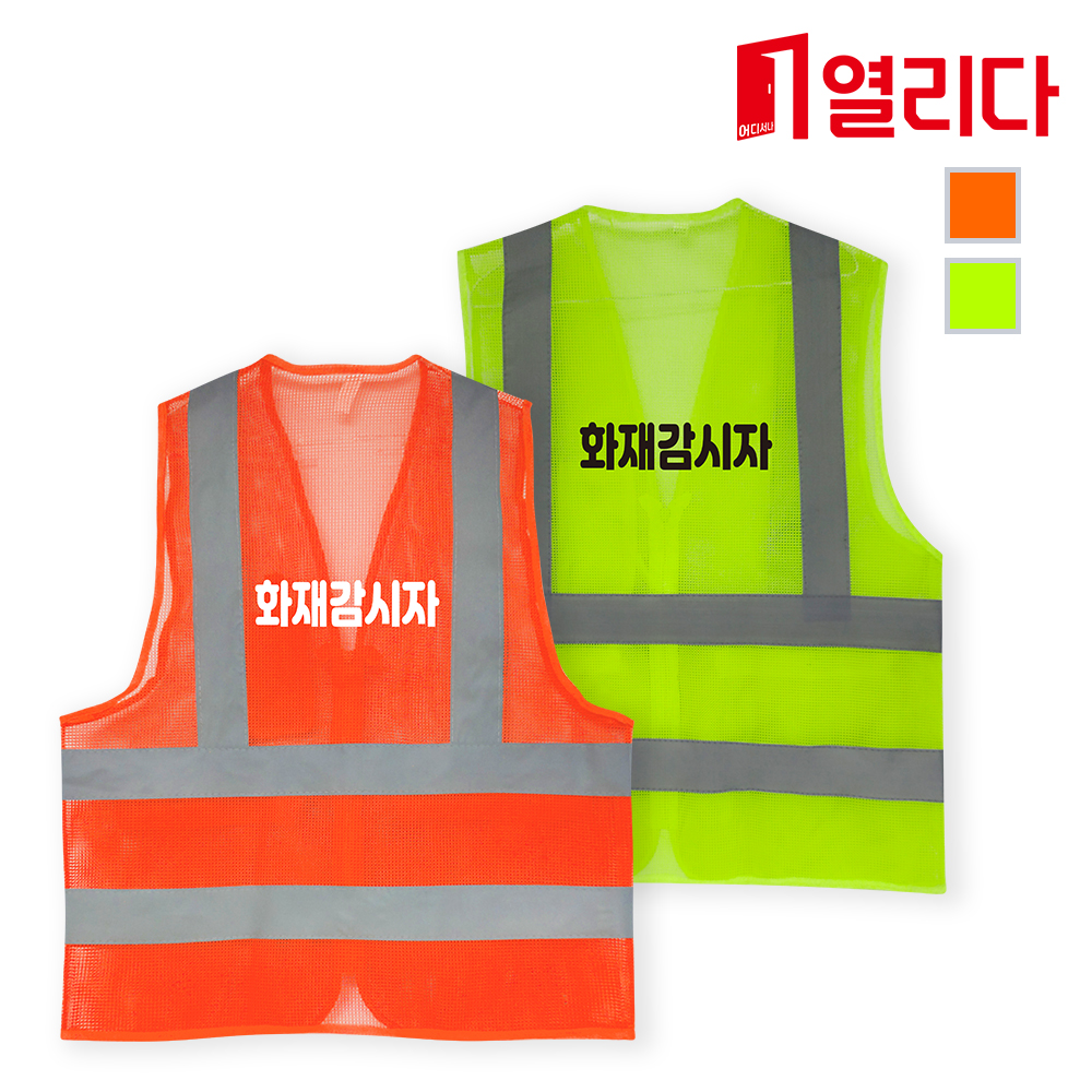 화재감시자 인쇄 망사조끼 반사띠 형광조끼 주홍조끼