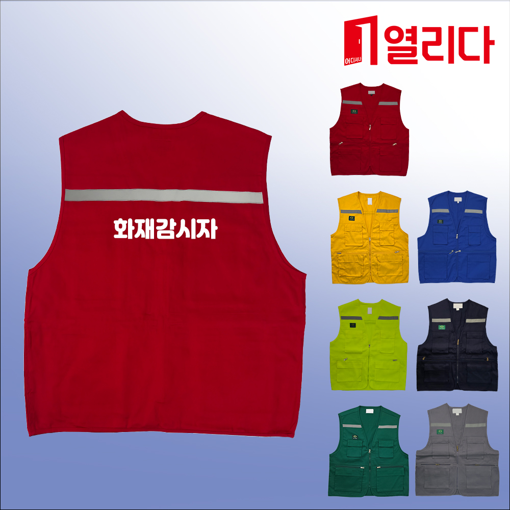 유도원 인쇄 망사조끼 반사띠 형광조끼 주홍조끼