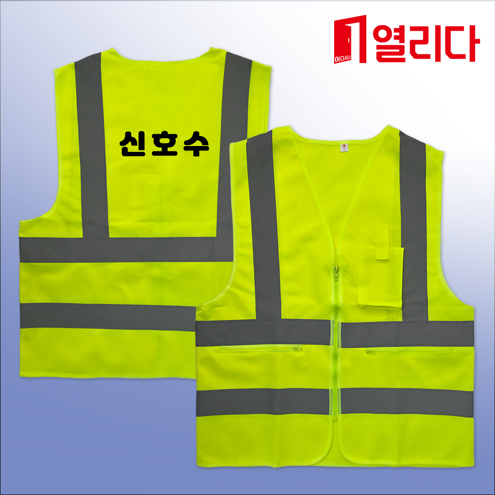 제품명 신호수 인쇄 천조끼 반사띠 형광조끼 주홍조끼