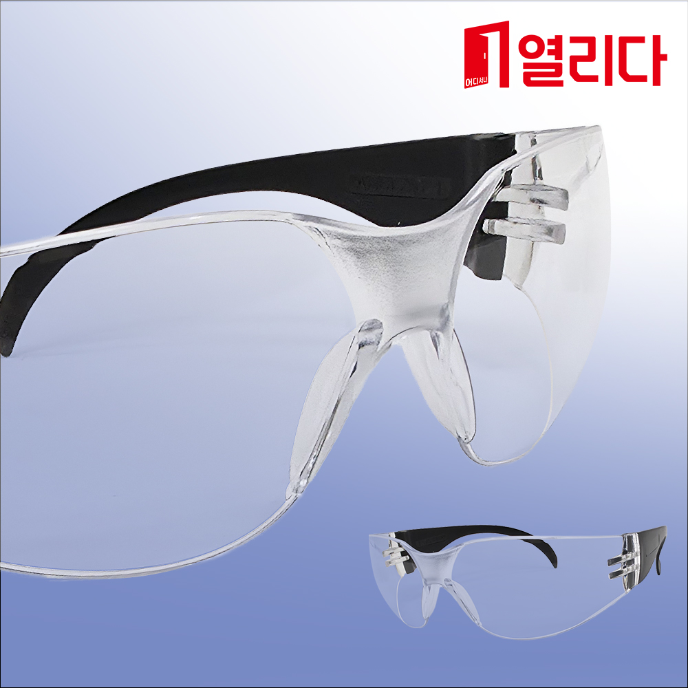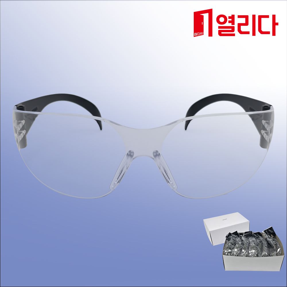 작업 중 발생할 수 있는 먼지, 파편, 비산물 등으로부터 눈을 보호하는 산업용 보안경입니다.