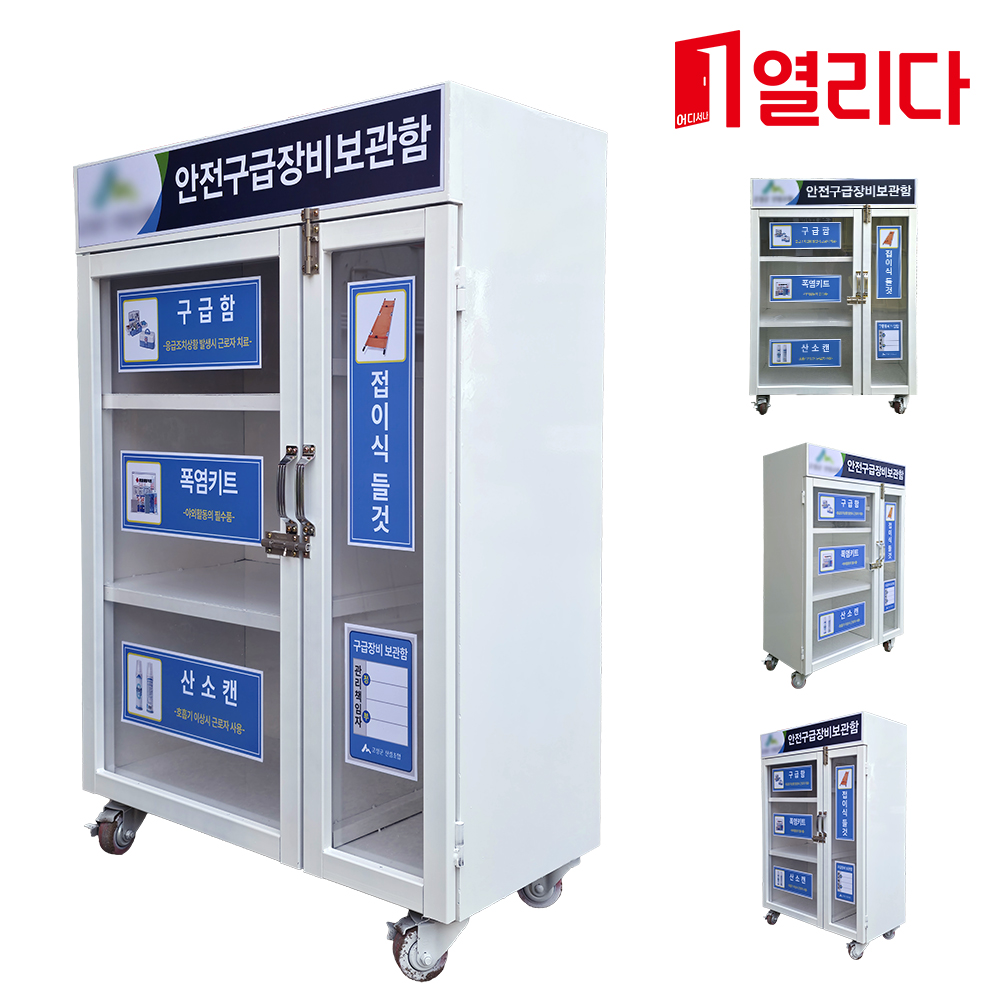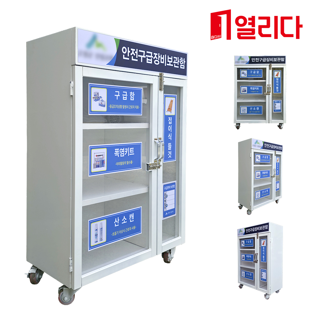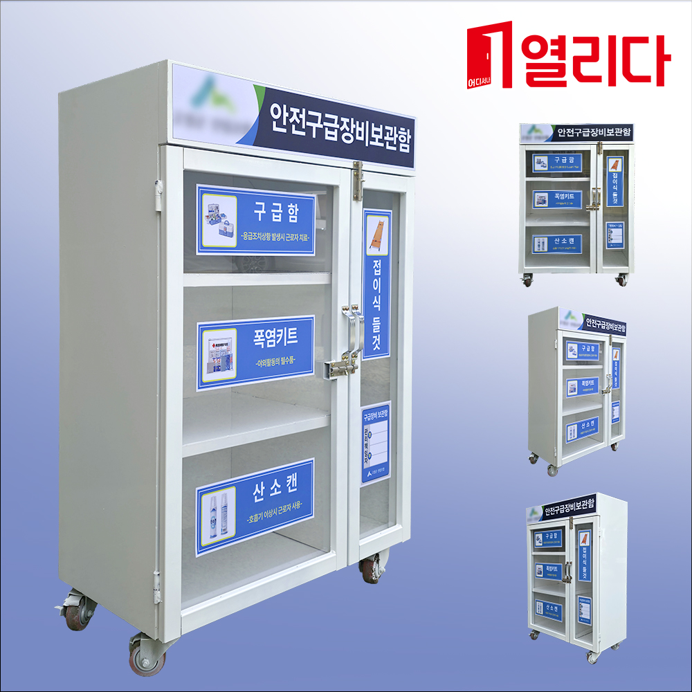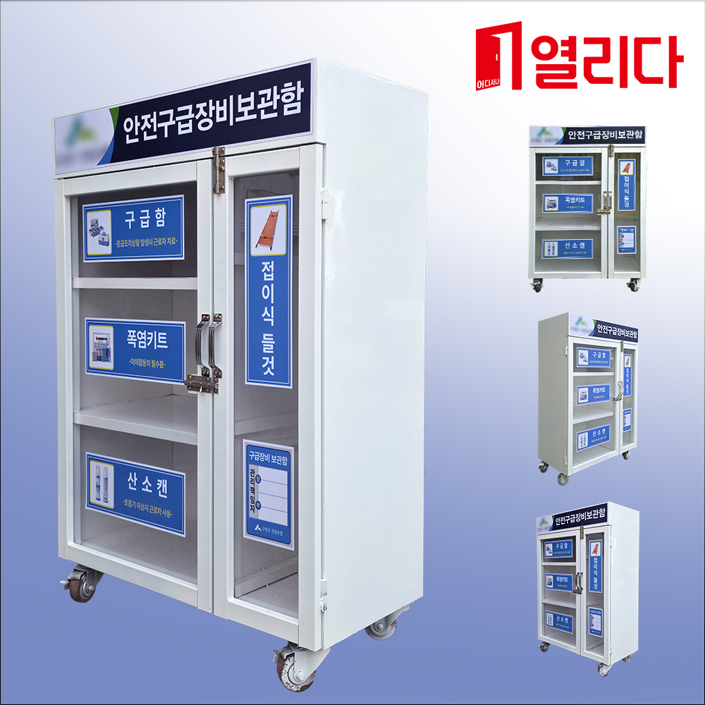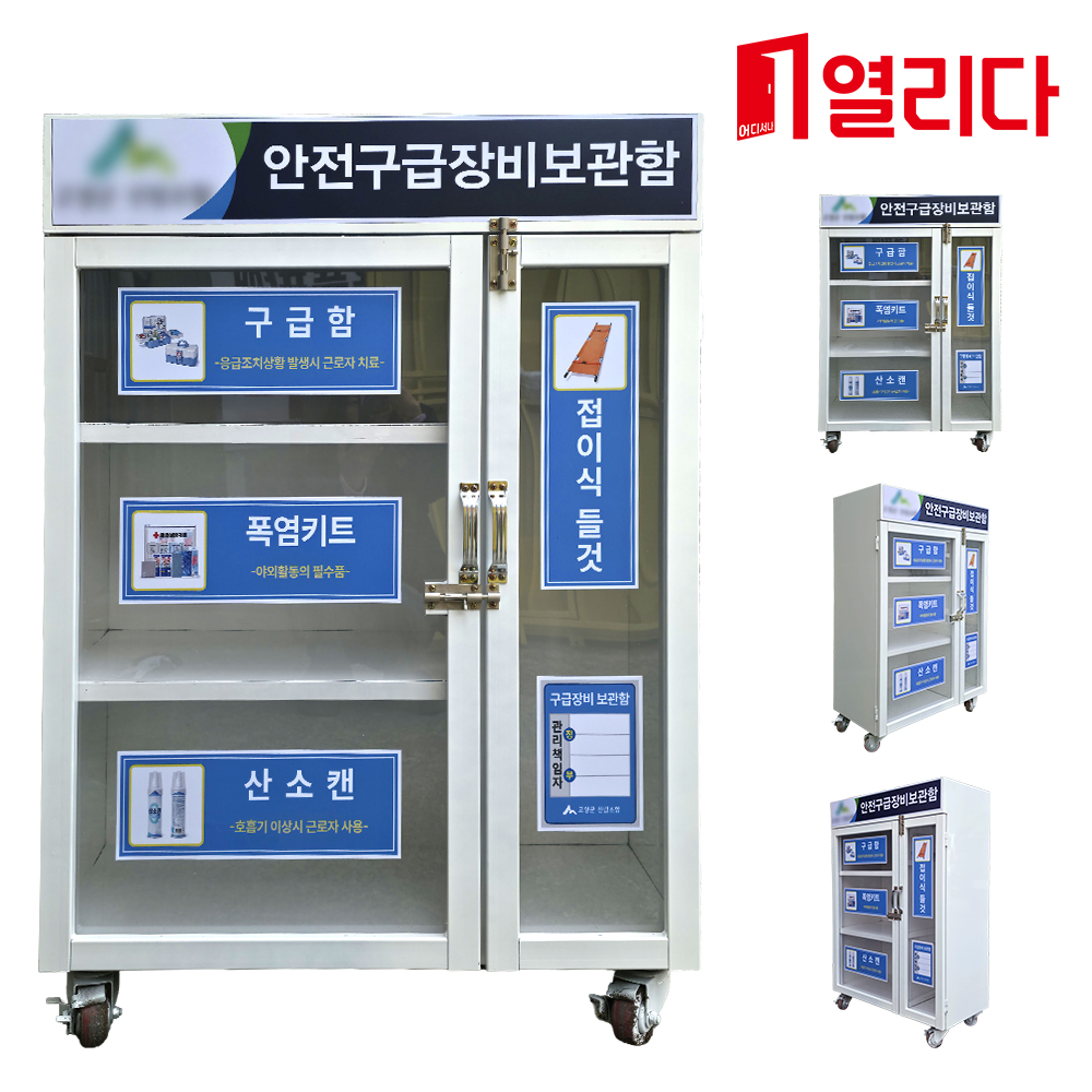 현장에서 발생할 수 있는 응급상황에 대비하여 구급장비를 한 곳에 체계적으로 보관할 수 있는 이동식 안전 보관함입니다.