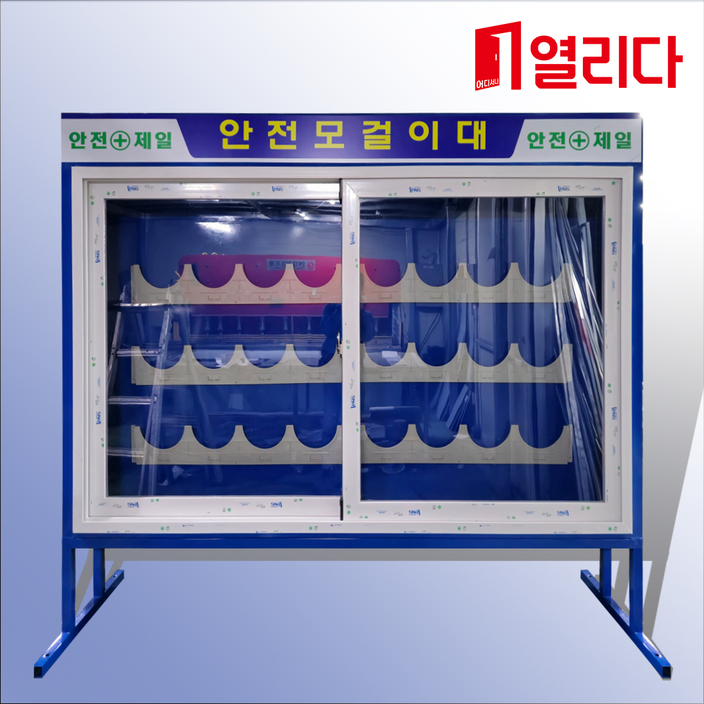 알루미늄 샤시 구조로 부식에 강하며 보관되는 안전모들을 먼지,오엽,습기 등으로부터 보호하며 넣거나 뺄때 쉽게 열고 닫을 수 있습니다.