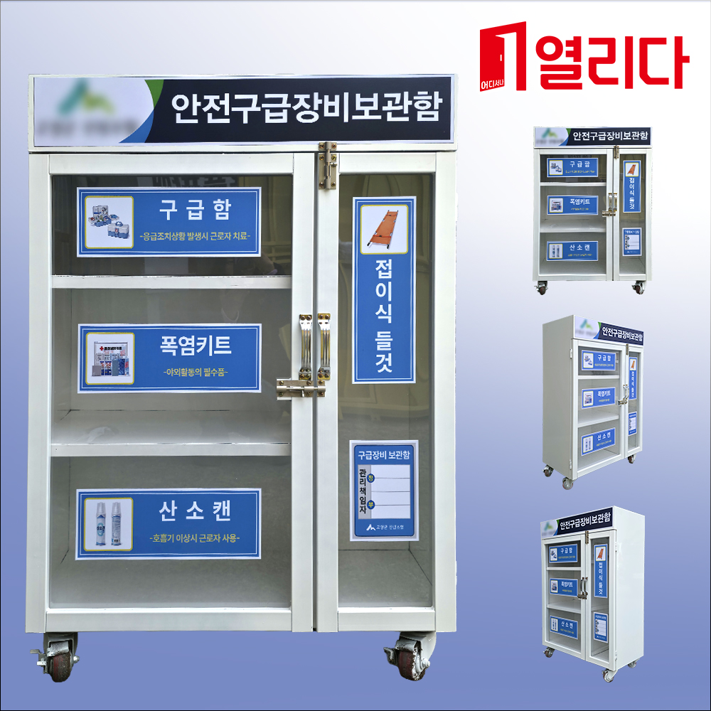 현장에서 발생할 수 있는 응급상황에 대비하여 구급장비를 한 곳에 체계적으로 보관할 수 있는 이동식 안전 보관함입니다.