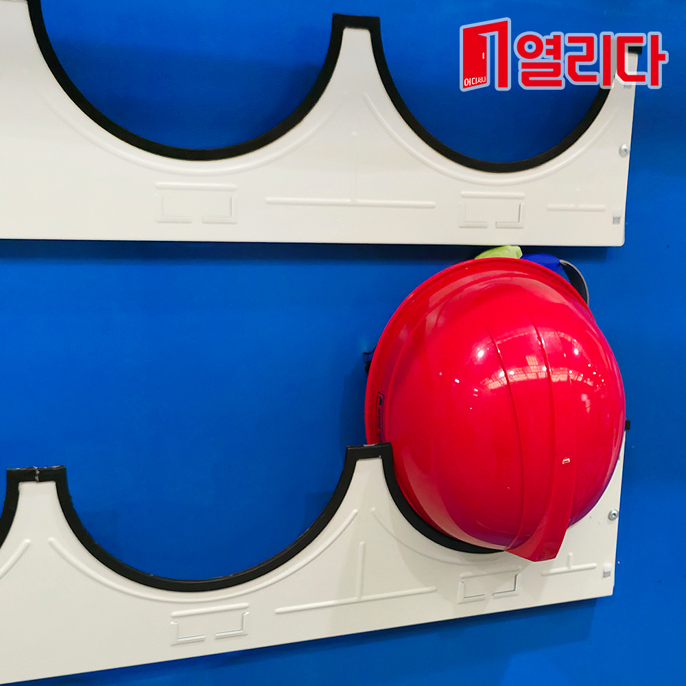산업현장에서 사용하는 안전모를 정리해서 걸어두는 전용 거치대, 아스테이지가 있어 안전모를 깨끗하게 보관할 수 있는 제품