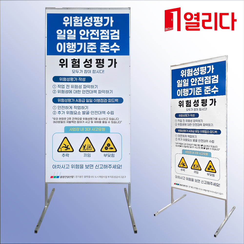 자립구조로 양면을 활용해 안전확보와 사고예방을 위한 경고 표지로 활용