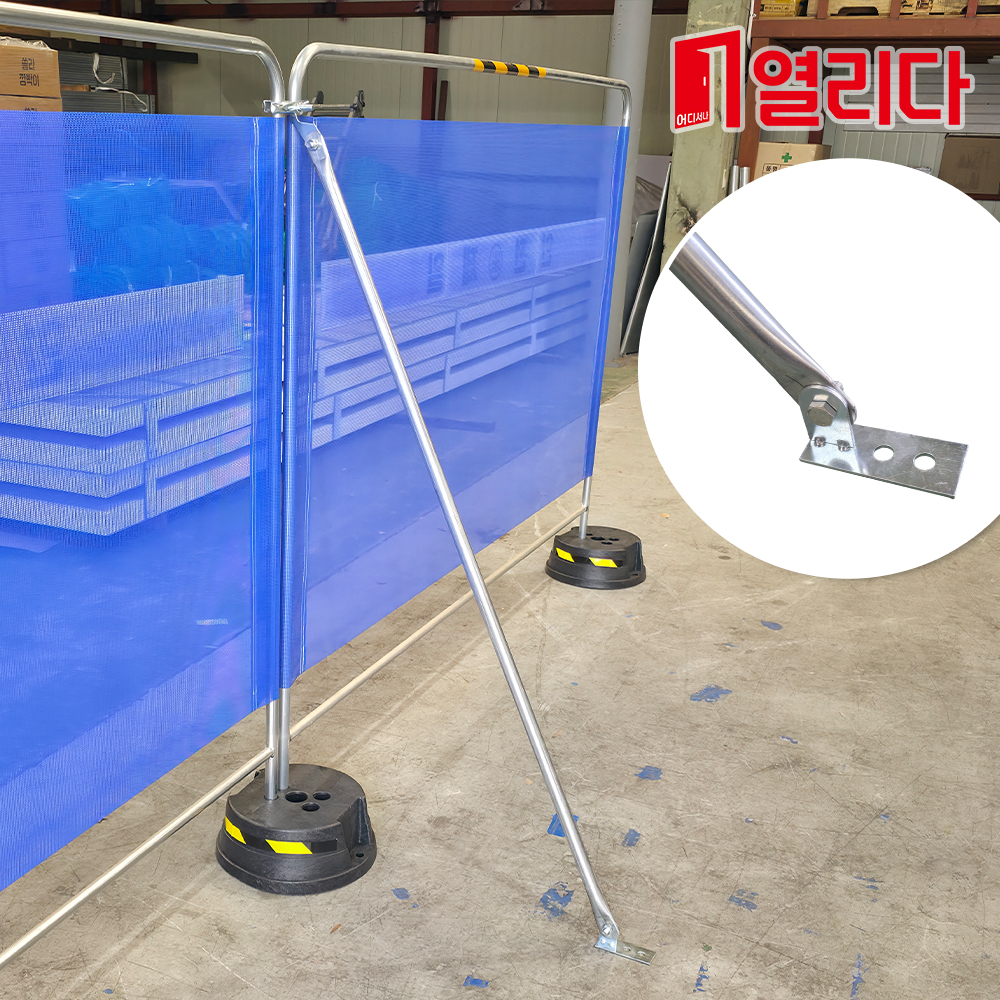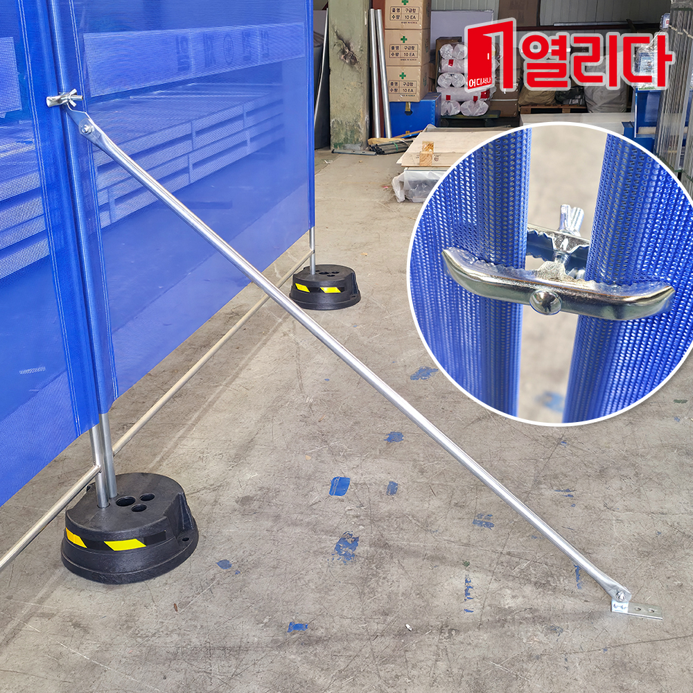 공사현장 가림막 휀스의 전도(넘어짐) 방지 및 구조 안정성 확보를 위한 보강 지지대입니다. 바람, 외부 충격, 장기간 설치 시 흔들림을 최소화하여 안전한 작업 환경을 유지합니다