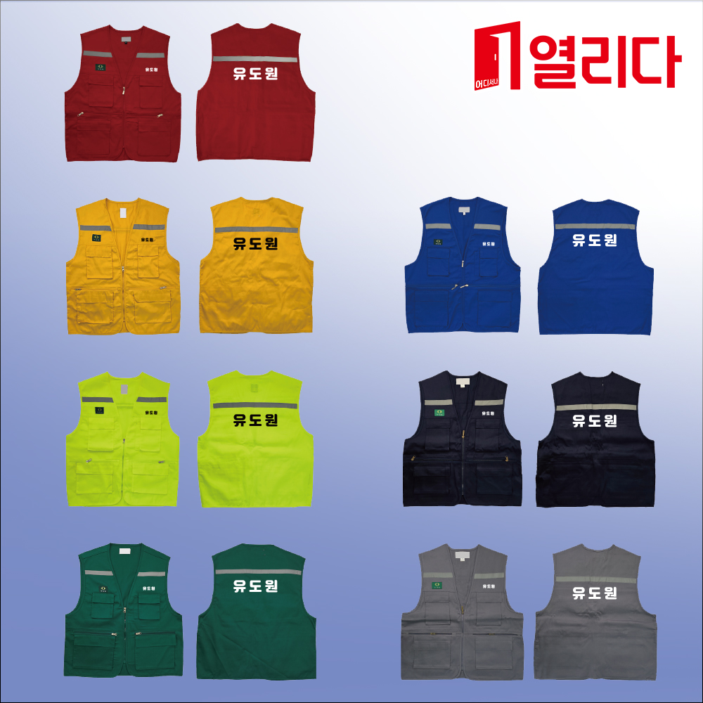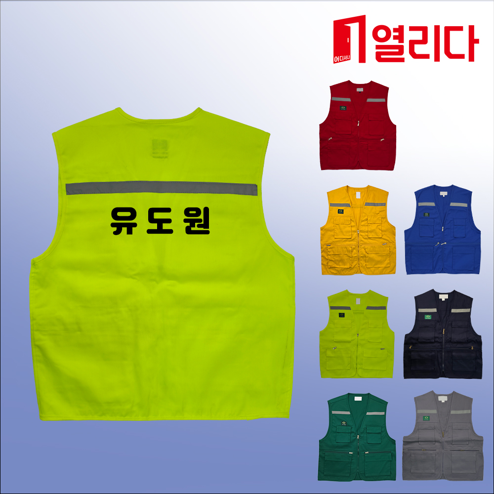 유도원 인쇄 망사조끼 반사띠 형광조끼 주홍조끼