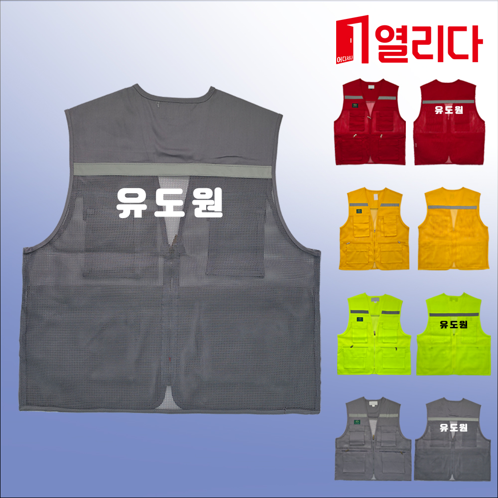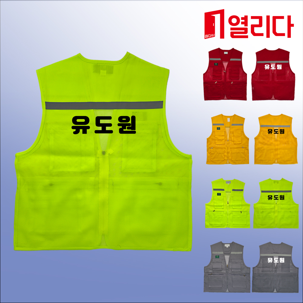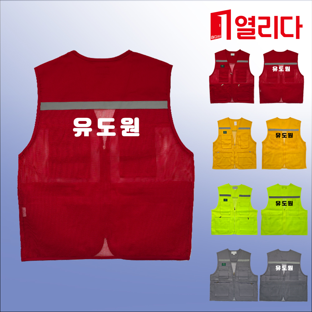 유도원 인쇄 망사조끼 반사띠 형광조끼 주홍조끼