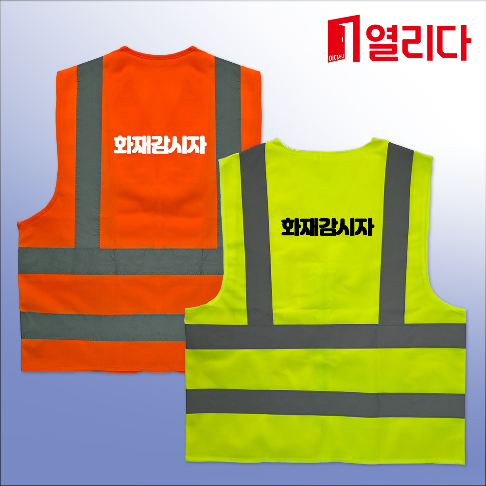 제품명 화재감시자 인쇄 천조끼 반사띠 형광조끼 주홍조끼