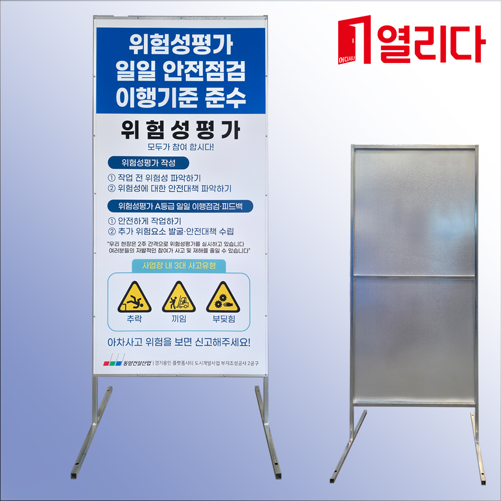 무재해 실천, 안내, 경고를 알리기 위해 사용,각파이프 틀에 철판을 부착한 형태