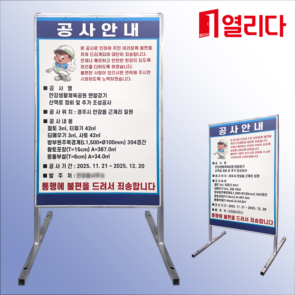 자립구조로 양면을 활용해 안전확보와 사고예방을 위한 경고 표지로 활용